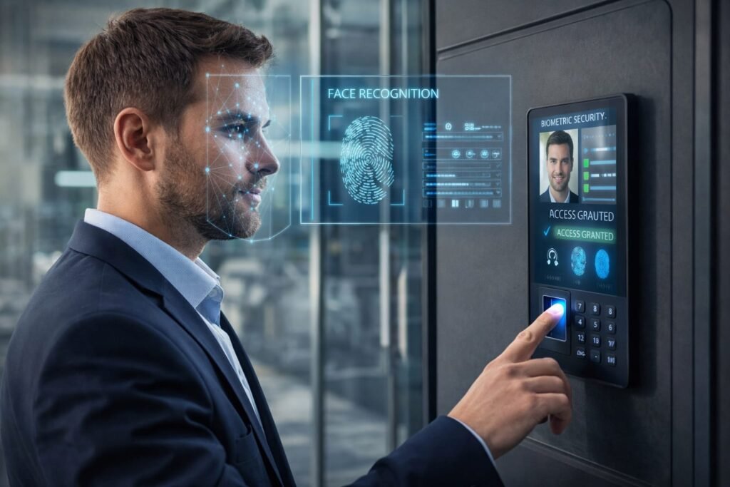 Implementación de sistemas de control de acceso biométrico, reconocimiento facial, sistemas RFID y plataformas de monitoreo centralizado.